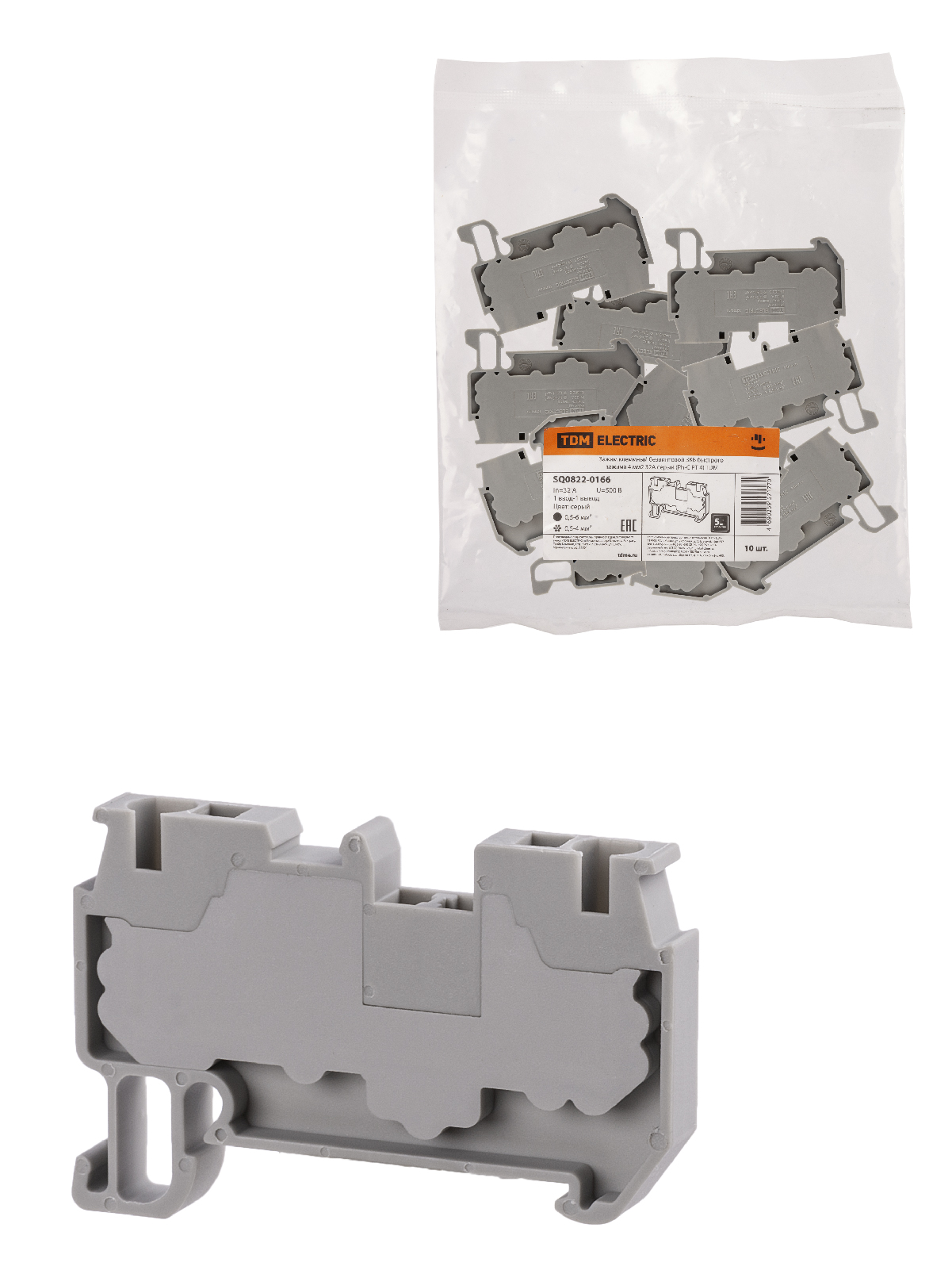 Наименование: Зажим клеммный безвинтовой ЗКБ быстрого зажима 4 мм2 32А серый (Ph-C PT 4) TDM