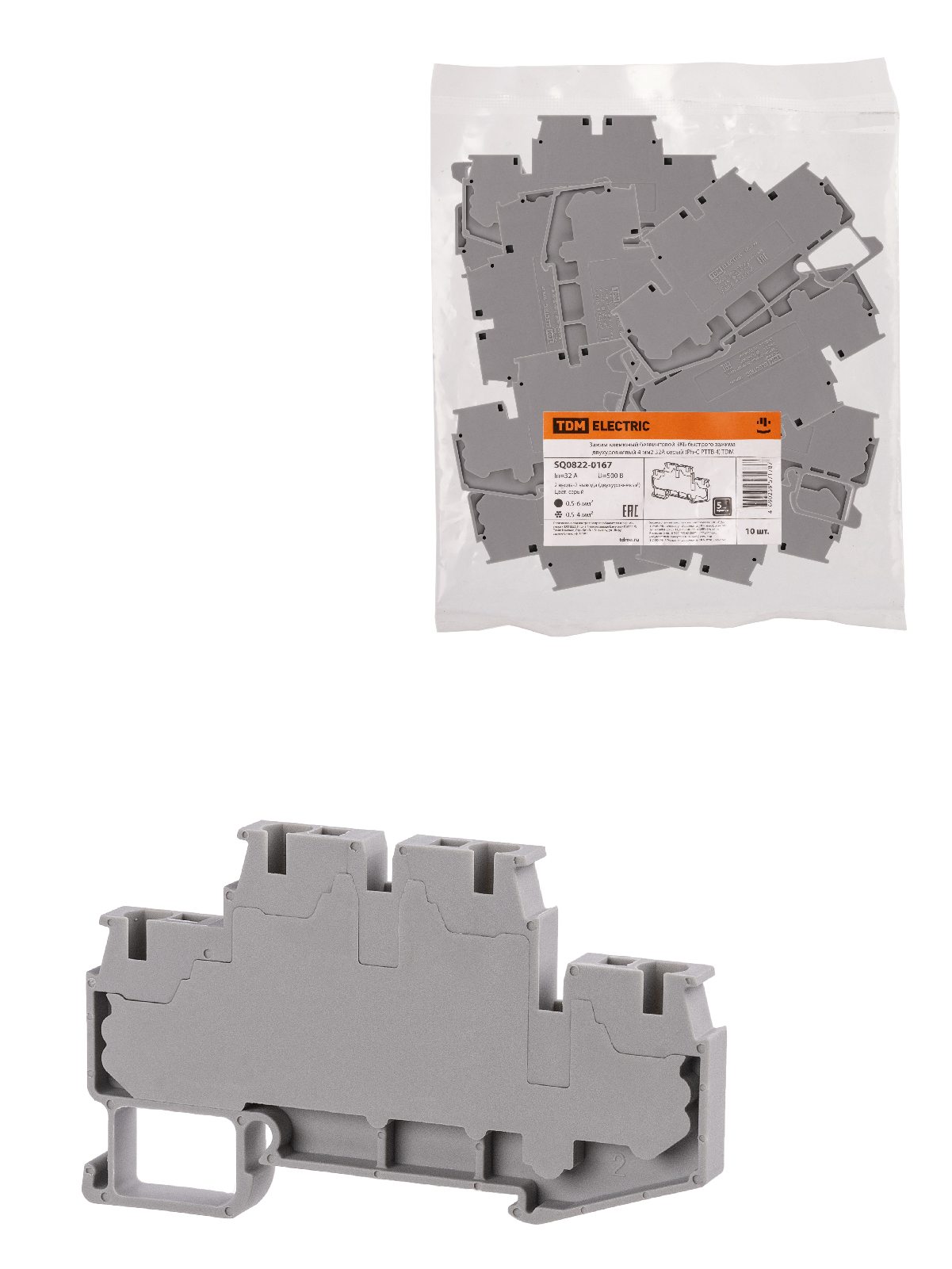 Наименование: Зажим клеммный безвинтовой ЗКБ быстрого зажима двухуровневый 4 мм2 32А серый (Ph-C PTTB 4) TDM