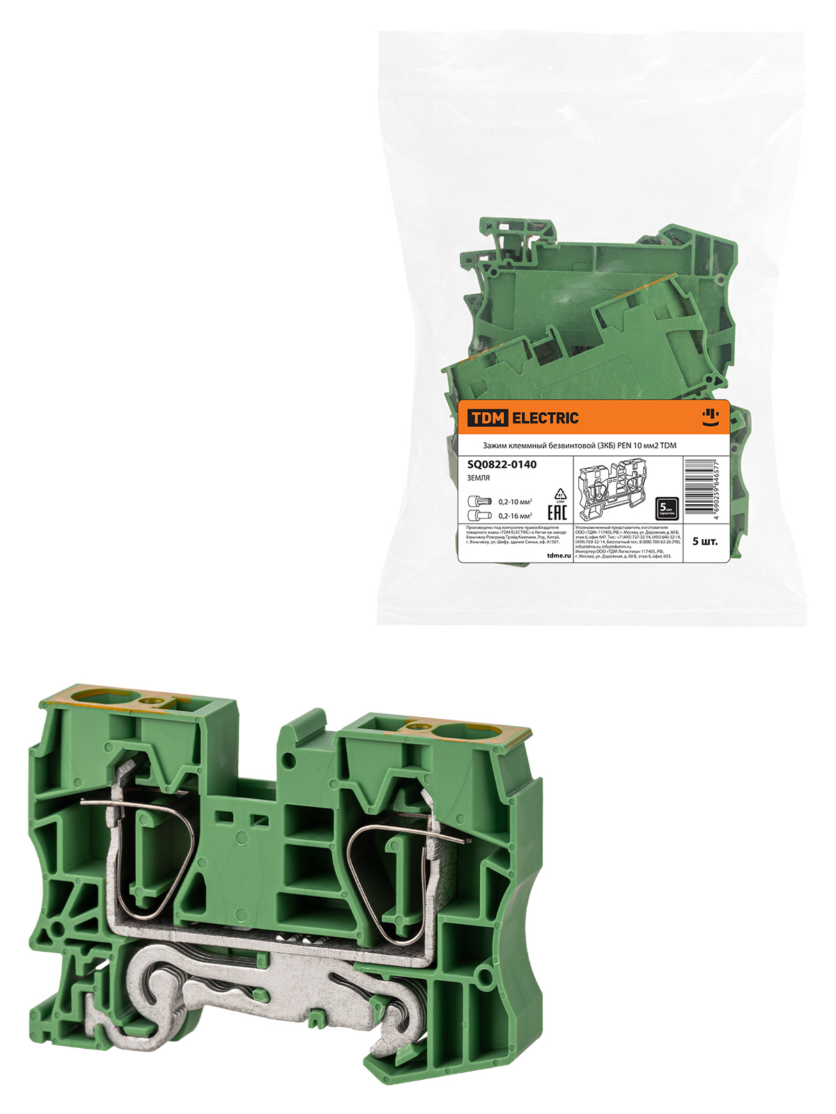 Наименование: Зажим клеммный безвинтовой (ЗКБ) PEN 10мм2 TDM
