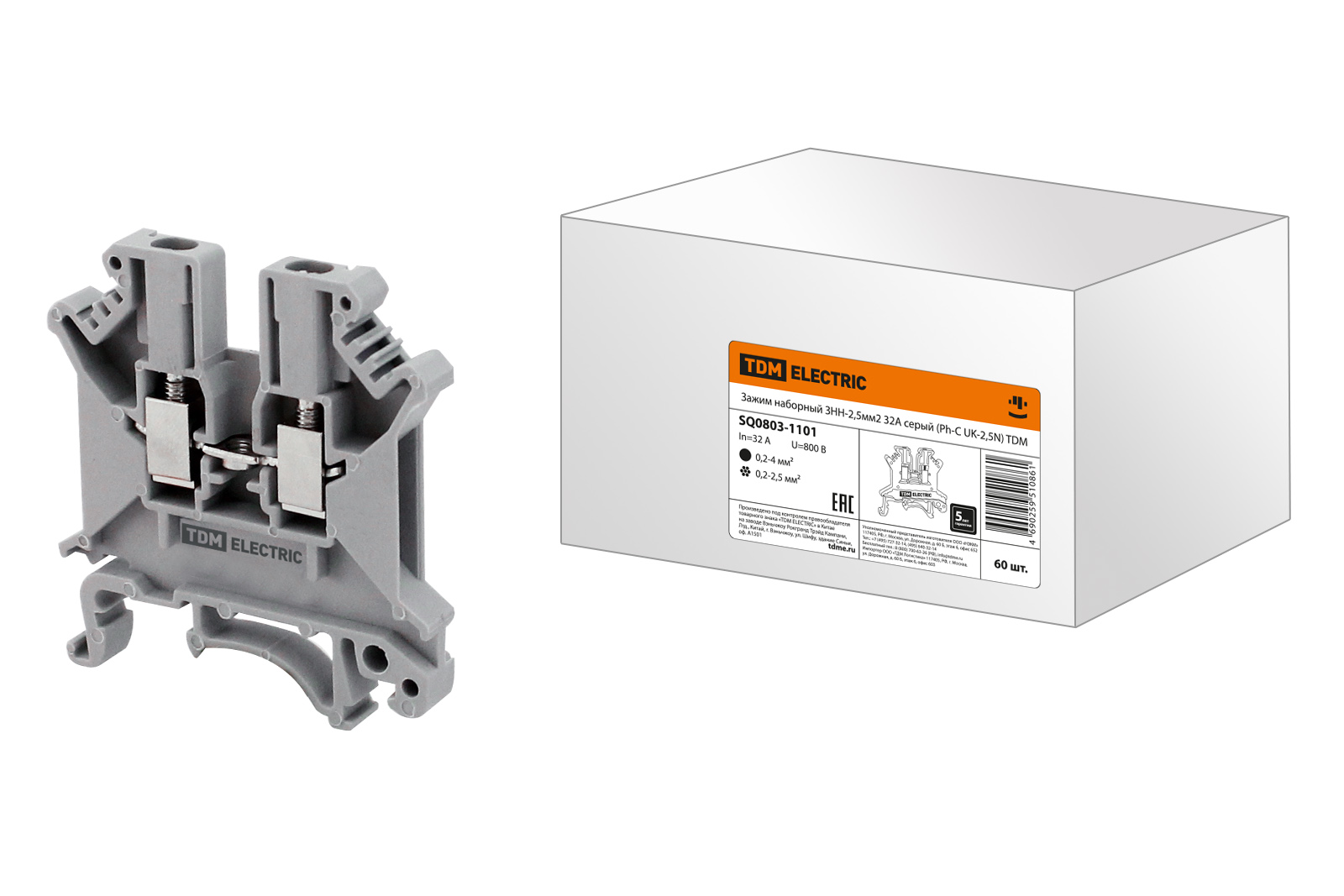 Наименование: Зажим наборный ЗНН-2,5мм2 32А серый (Ph-C UK-2,5N) TDM