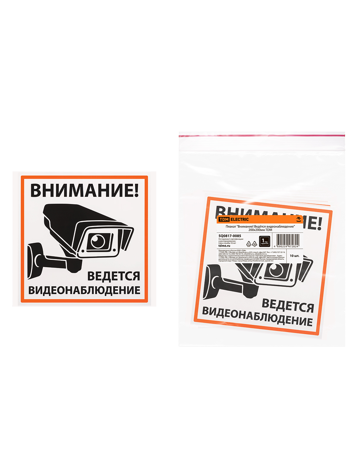 Наименование: Плакат "Внимание! Ведётся видеонаблюдение" 200х200мм TDM