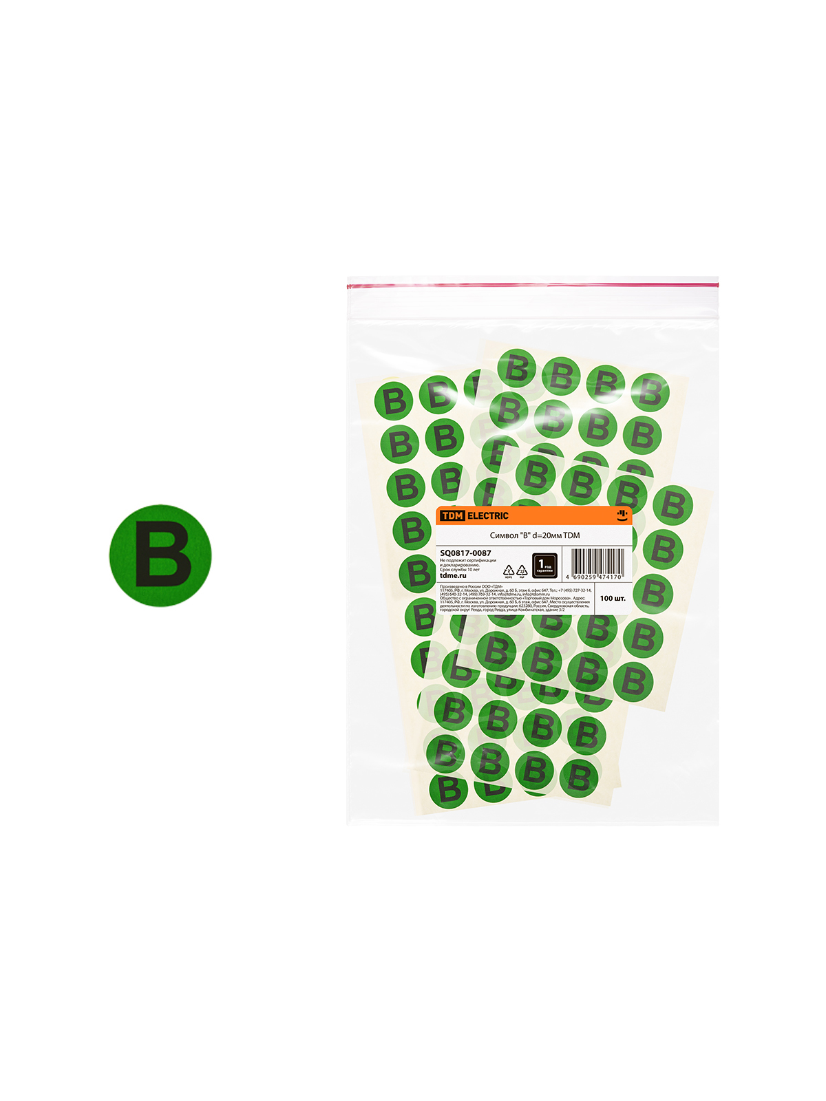 Наименование: Символ "B" d=20мм TDM