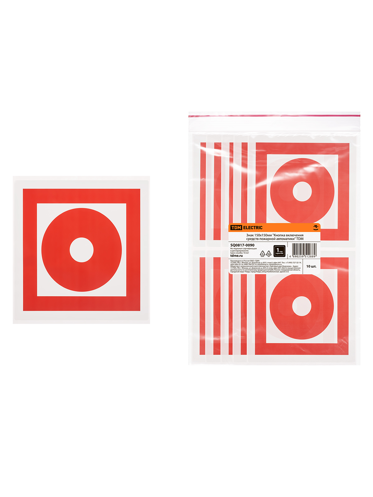 Наименование: Знак 150х150мм "Кнопка включения средств пожарной автоматики" TDM