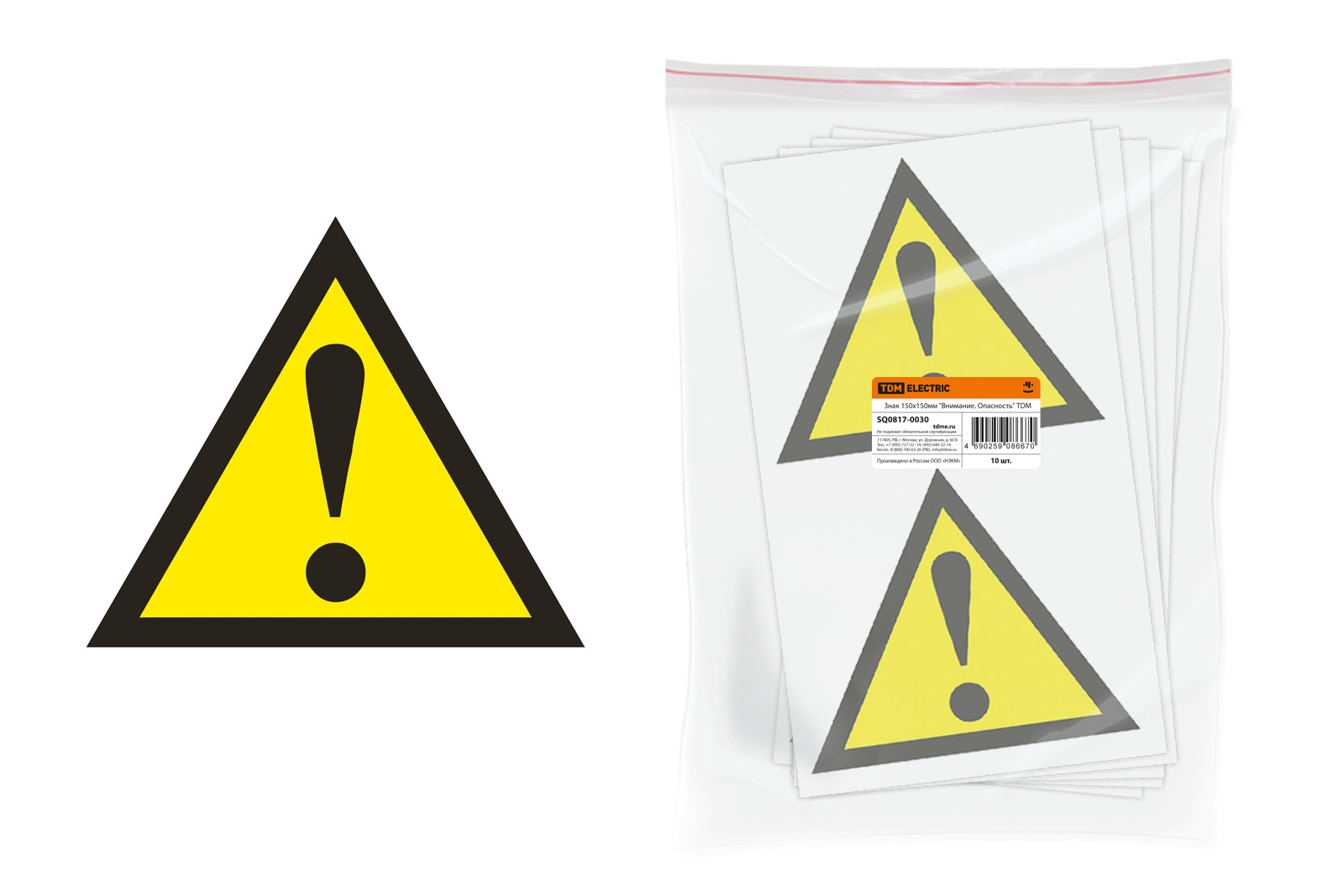 Наименование: Знак 150х150мм "Внимание. Опасность" TDM