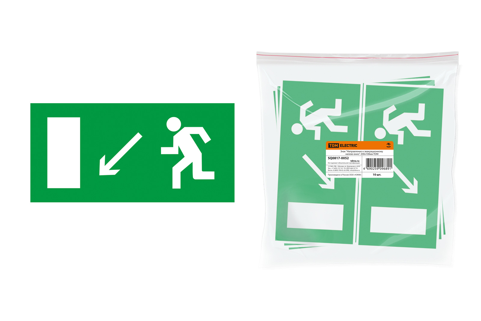 Наименование: Знак "Направление к эвакуационному выходу налево вниз" 200х100мм TDM