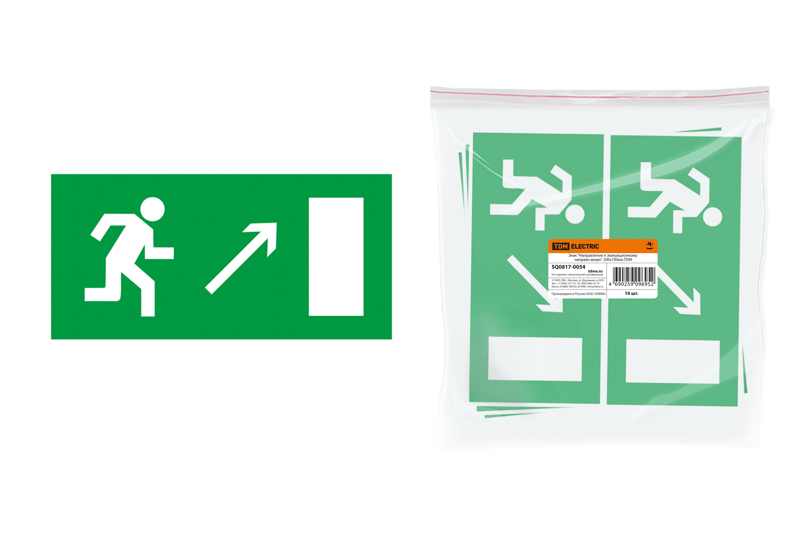 Наименование: Знак "Направление к эвакуационному выходу направо вверх" 200х100мм TDM