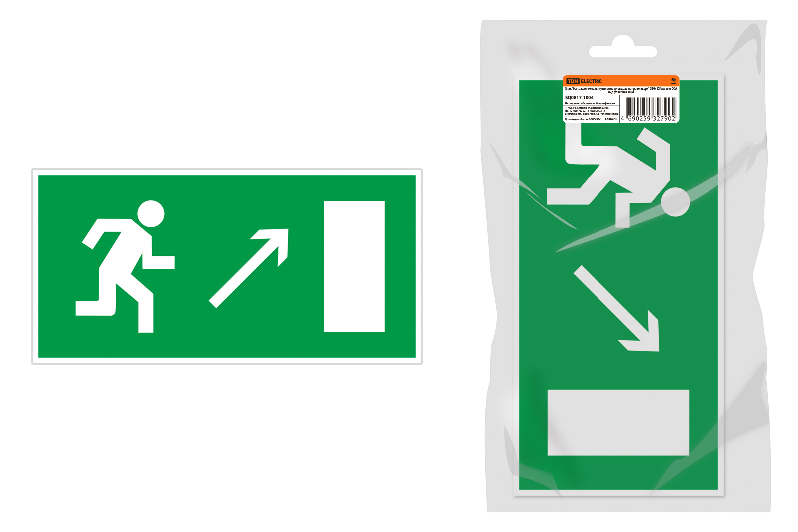 Наименование: Знак "Направление к эвакуационному выходу направо вверх" 350х124мм для ССА инд. упаковка TDM