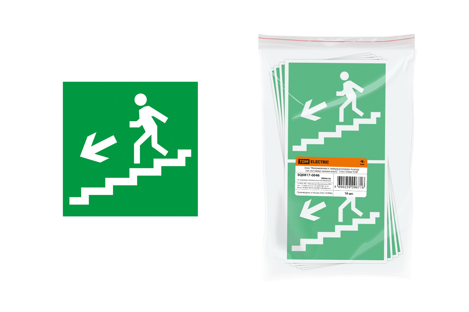 Знак "Направление к эвакуационному выходу (по лестнице налево вниз)" 150х150мм TDM