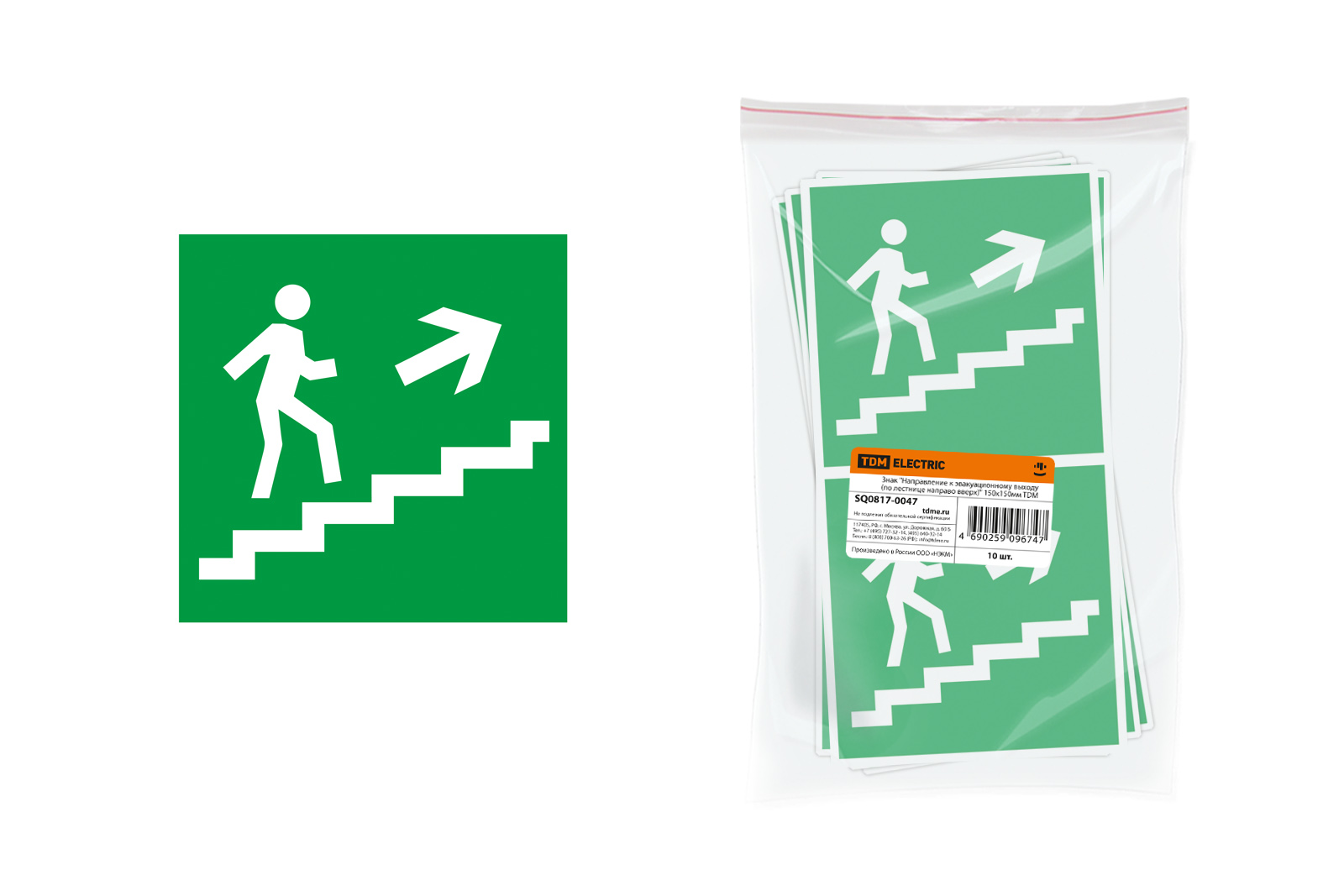 Наименование: Знак "Направление к эвакуационному выходу (по лестнице направо вверх)" 150х150мм TDM