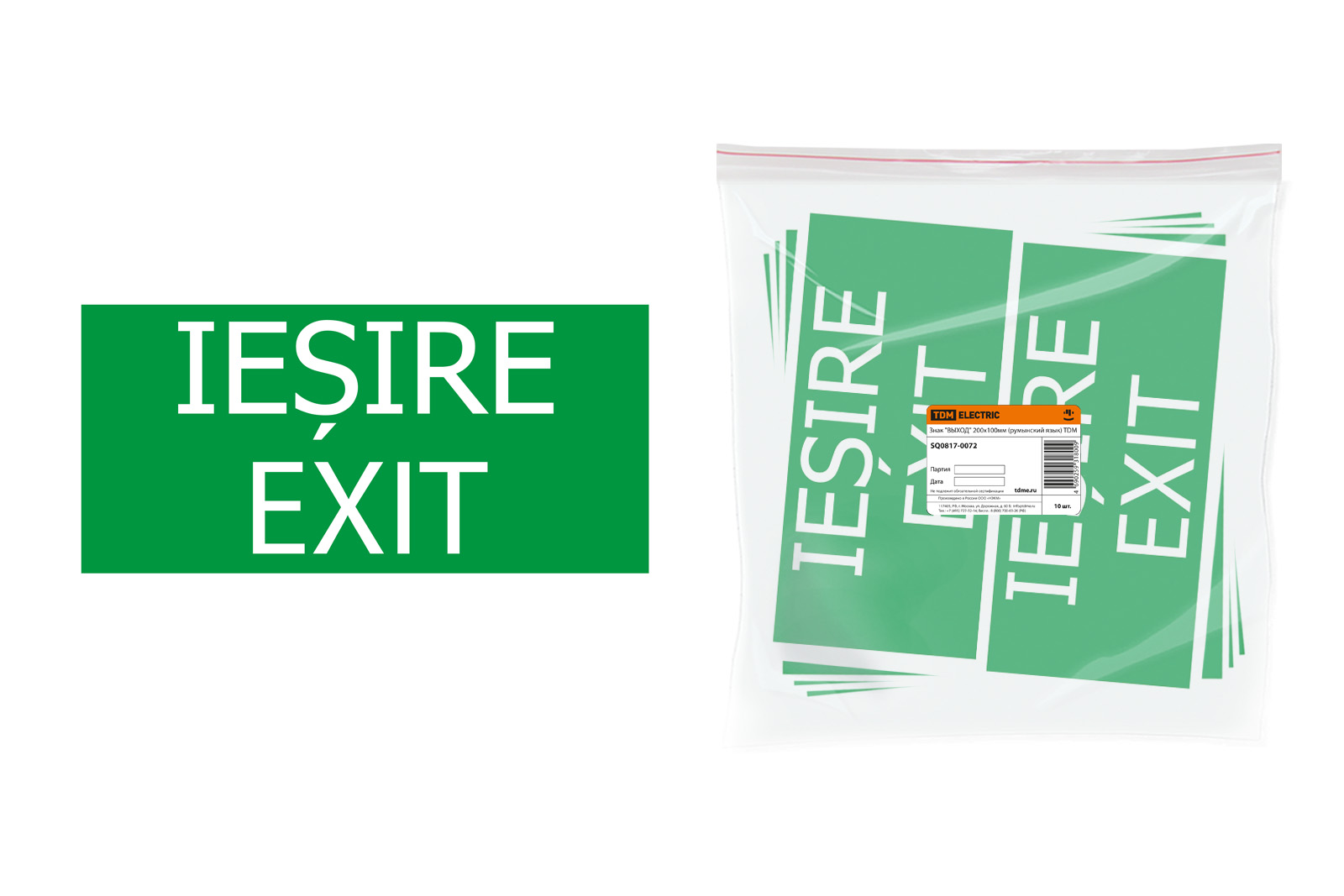 Наименование: Знак "ВЫХОД" 200х100мм (румынский язык) TDM