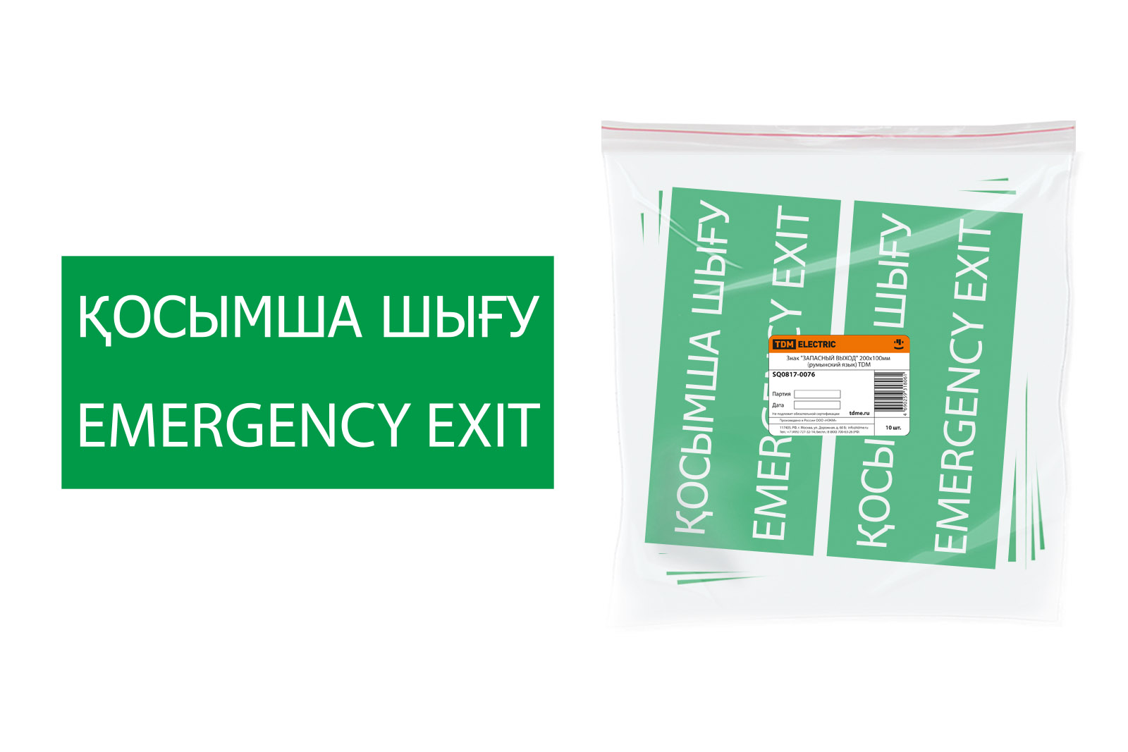 Наименование: Знак "ЗАПАСНЫЙ ВЫХОД" 200х100мм (казахский язык) TDM
