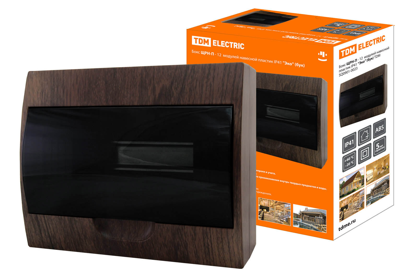 Наименование: Бокс ЩРН-П-12 модулей навесной пластик IP41 "Эко" (бук) TDM