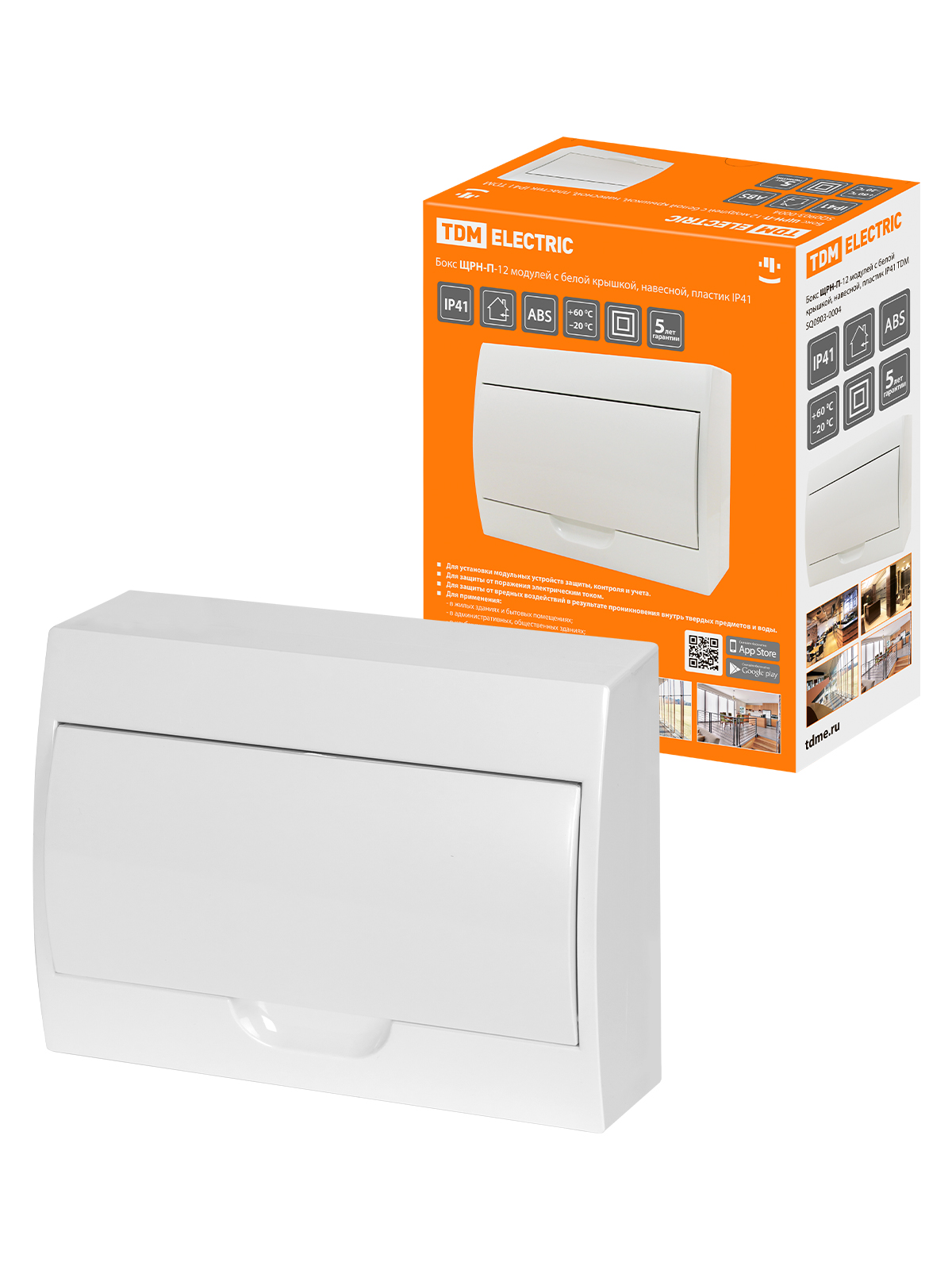 Наименование: Бокс ЩРН-П-12модулей с белой крышкой, навесной, пластик IP41 TDM