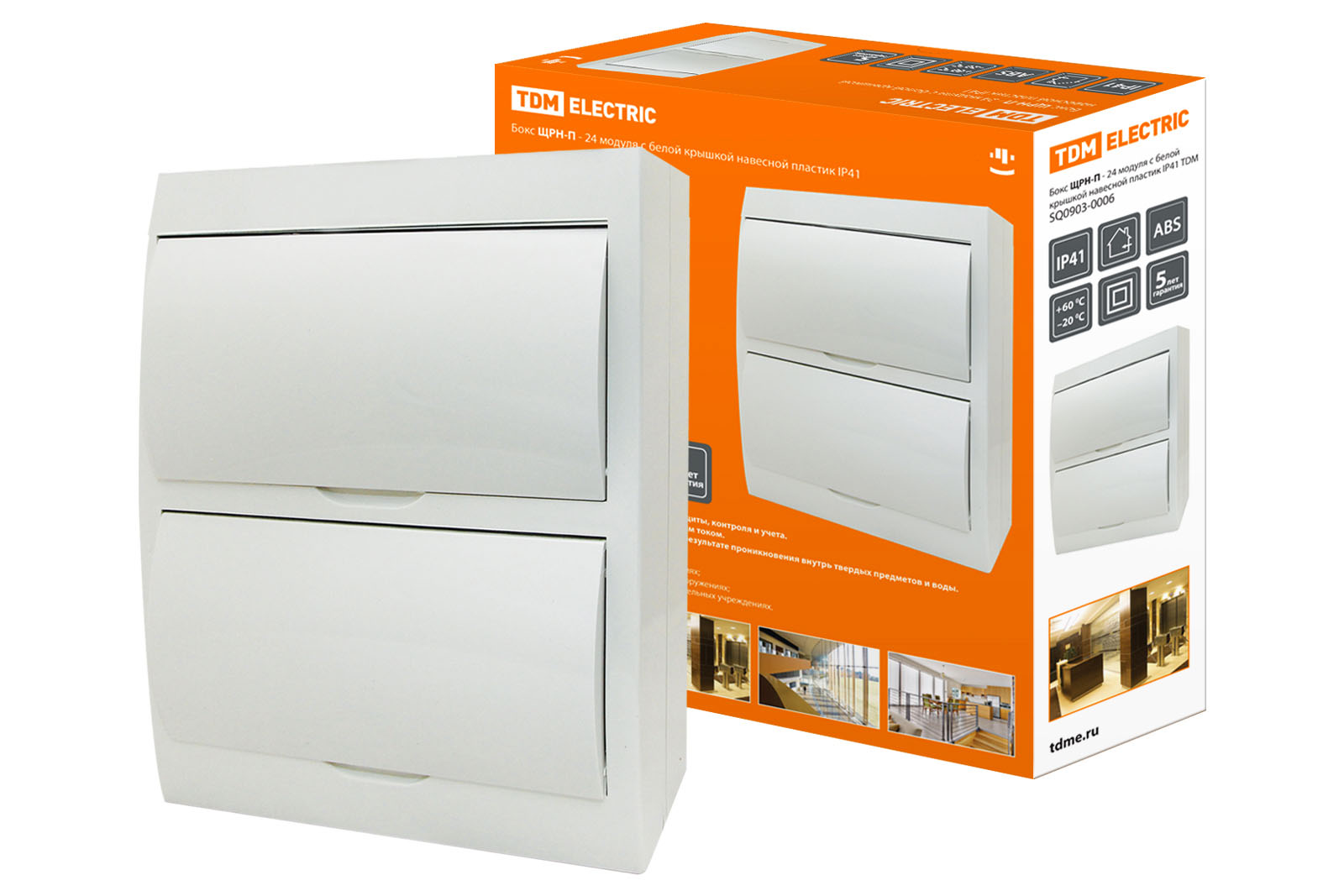 Наименование: Бокс ЩРН-П-24модуля с белой крышкой,навесной, пластик IP41 TDM