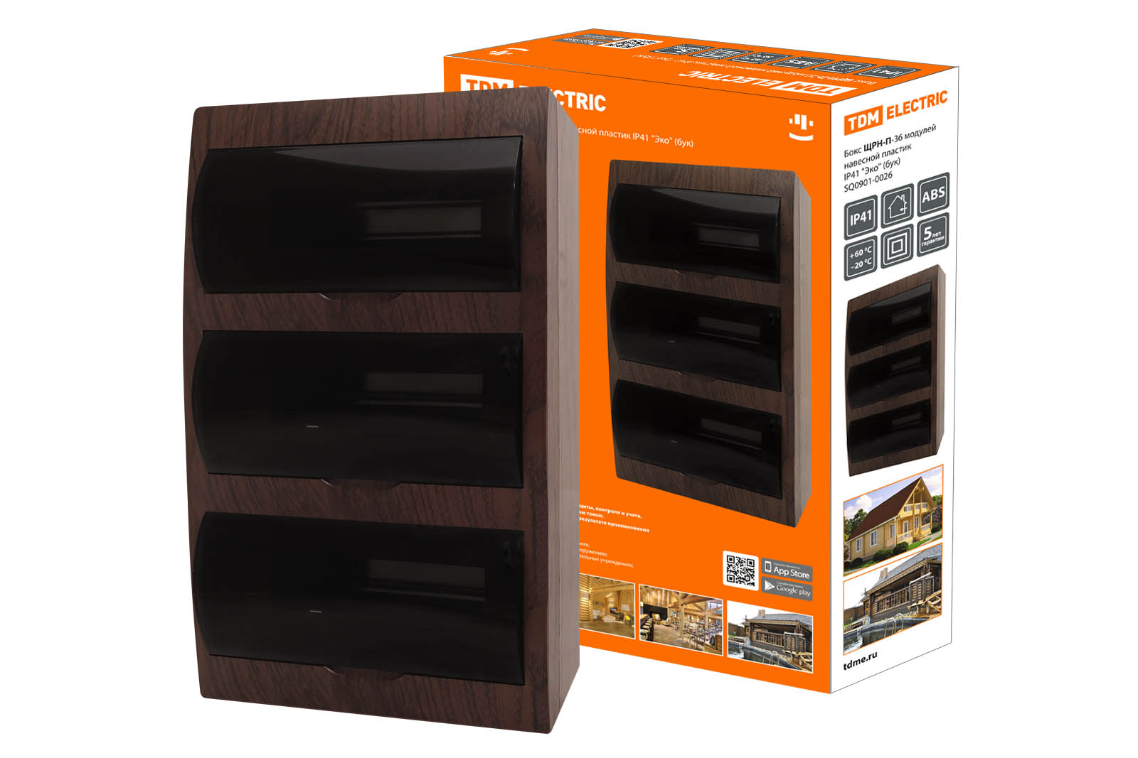 Наименование: Бокс ЩРН-П-36 модулей навесной пластик IP41 "Эко" (бук) TDM