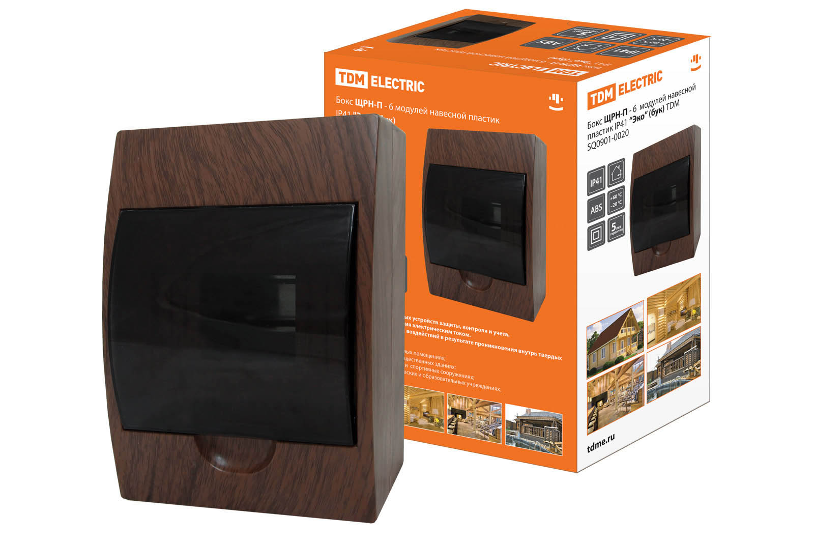 Наименование: Бокс ЩРН-П-6 модулей навесной пластик IP41 "Эко" (бук) TDM