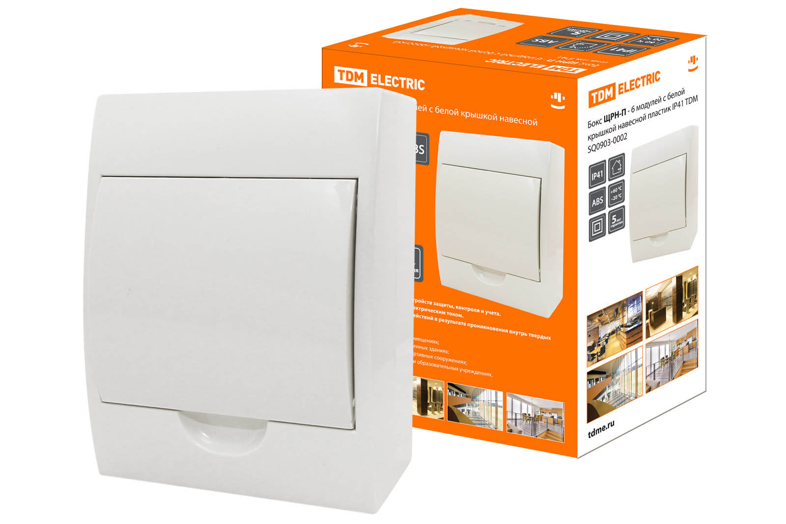 Наименование: Бокс ЩРН-П-6модулей с белой крышкой, навесной, пластик IP41 TDM
