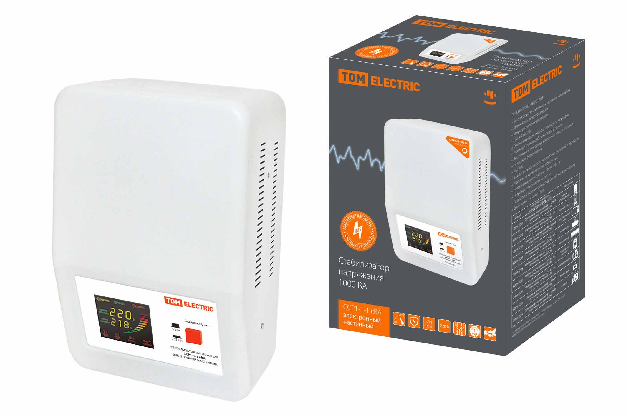 Наименование: Стабилизатор напряжения ССР1-1-1 кВА электронный настенный TDM