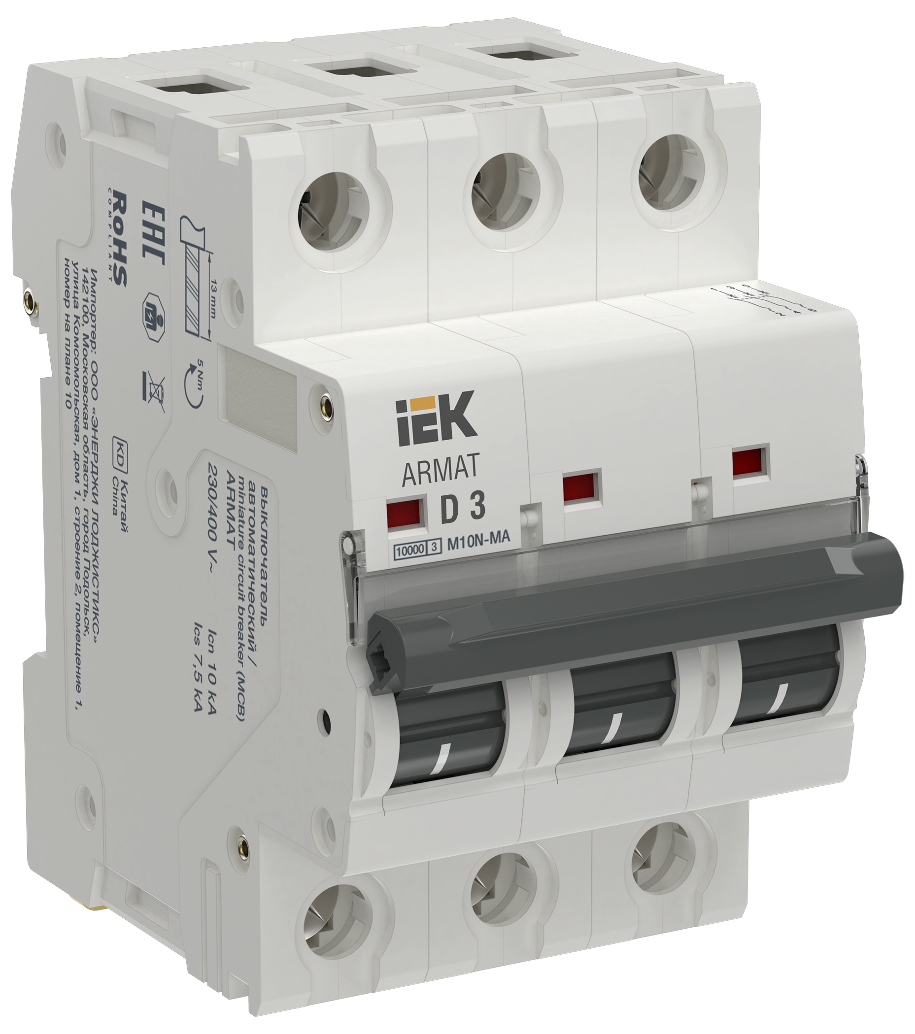 Наименование: ARMAT Автоматический выключатель без теплового расцепителя M10N-MA 3P D 3А IEK