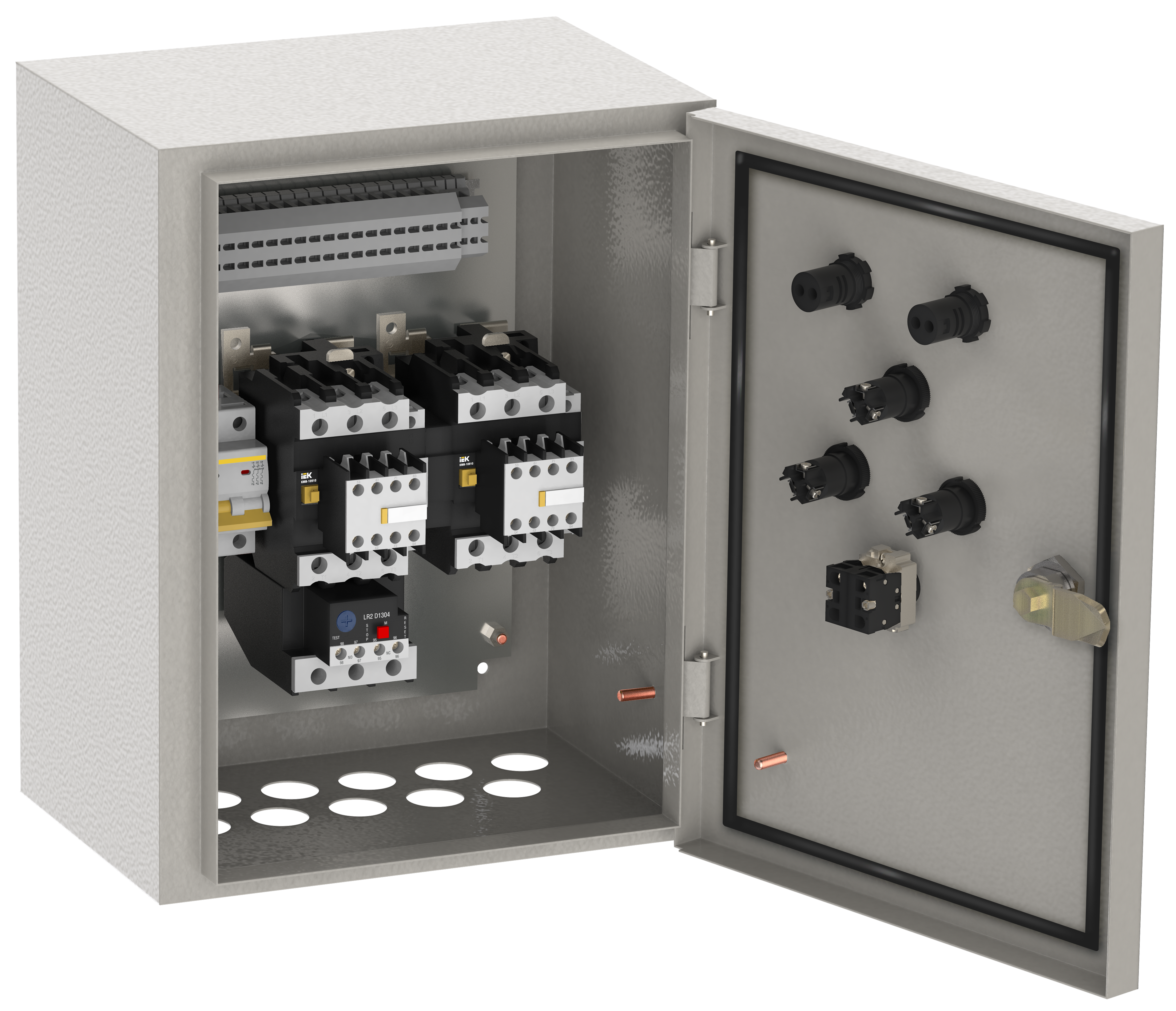 Наименование: Ящик управления РУСМ5410-3074 реверсивный 1 фидер автоматический выключатель на каждый фидер без переключателя на автоматический режим 10А IP54 IEK